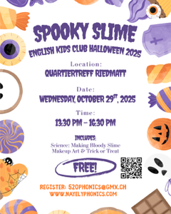 Kontakt: Nayely Müller, Tel. 078 405 90 73, Mail: English.Kids.Club520@gmail.com, Homepage: www.nayelyphonics.com